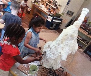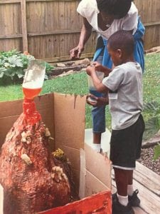 July 6 – Our Volcano is erupting! The Investigator’s class researched, designed, created, and painted a large class volcano. They had a blast watching and helping the volcano erupt!!